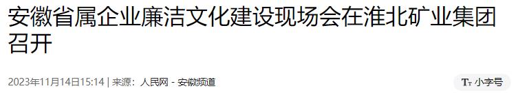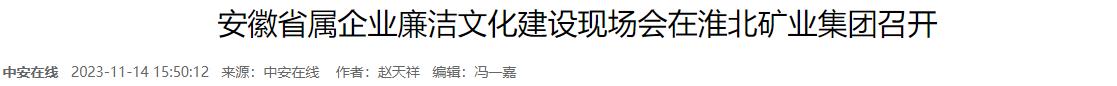 媒體專題報道:安徽省屬企業廉潔文化建設現場會在淮北礦業集團召開