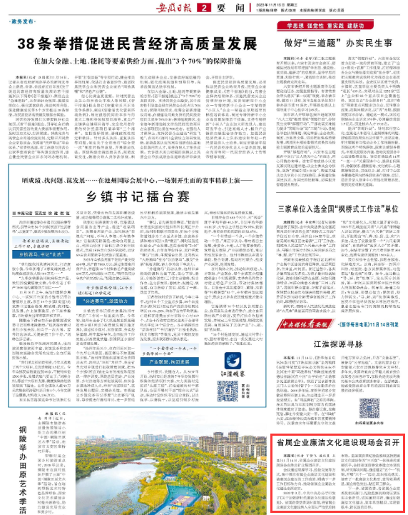 11月14日,安徽省屬企業廉潔文化建設現場會在淮北礦業集團召開。會議通過觀摩學習、經驗交流等方式,集中展示省屬企業廉潔文化建設和清廉國企建設的工作成效,明確下一步工作目標和方向,推動省屬企業廉潔文化建設走深走實,不斷優化凈化國有企業政治生態,為國資國企高質量發展提供堅強保障。