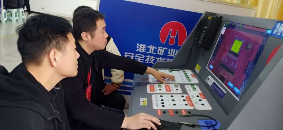 培訓(xùn)學(xué)員利用仿真模擬訓(xùn)練裝置進行煤礦井下電氣作業(yè)實操訓(xùn)練
