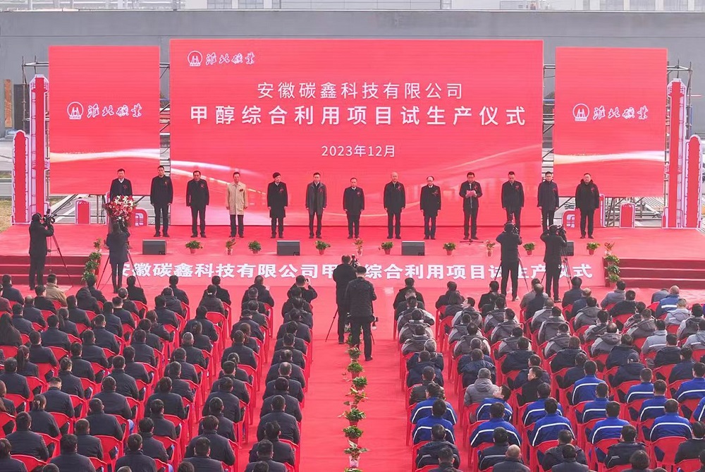 12月28日上午,碳鑫科技公司甲醇綜合利用項目試生產儀式舉行。中國工程院院士、中科院大連化學物理研究所所長劉中民,淮北市委副書記、市長汪華東,省國資委黨委委員、總會計師吳明,淮北礦業集團黨委書記、董事長方良才,東華科技黨委書記、董事長李立新出席儀式并分別致辭?;幢钡V業集團黨委副書記、總經理孫方主持儀式。