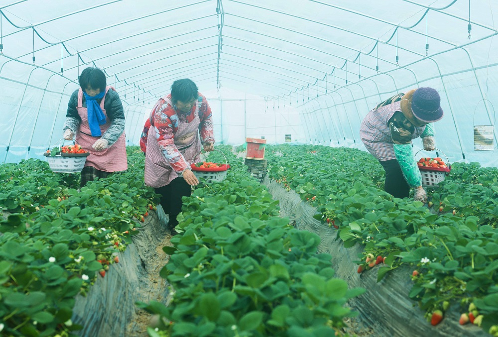 “49個羊肚菌大棚歇茬間隙,我們拿出30個大棚承包給村民種植草莓,余下的19個大棚里種植了西瓜、紅薯等農作物?!辈芮f鎮副鎮長彭薛說,“草莓現在到了豐收期,預計畝產能達到2000斤,收益很可觀?!?/p>