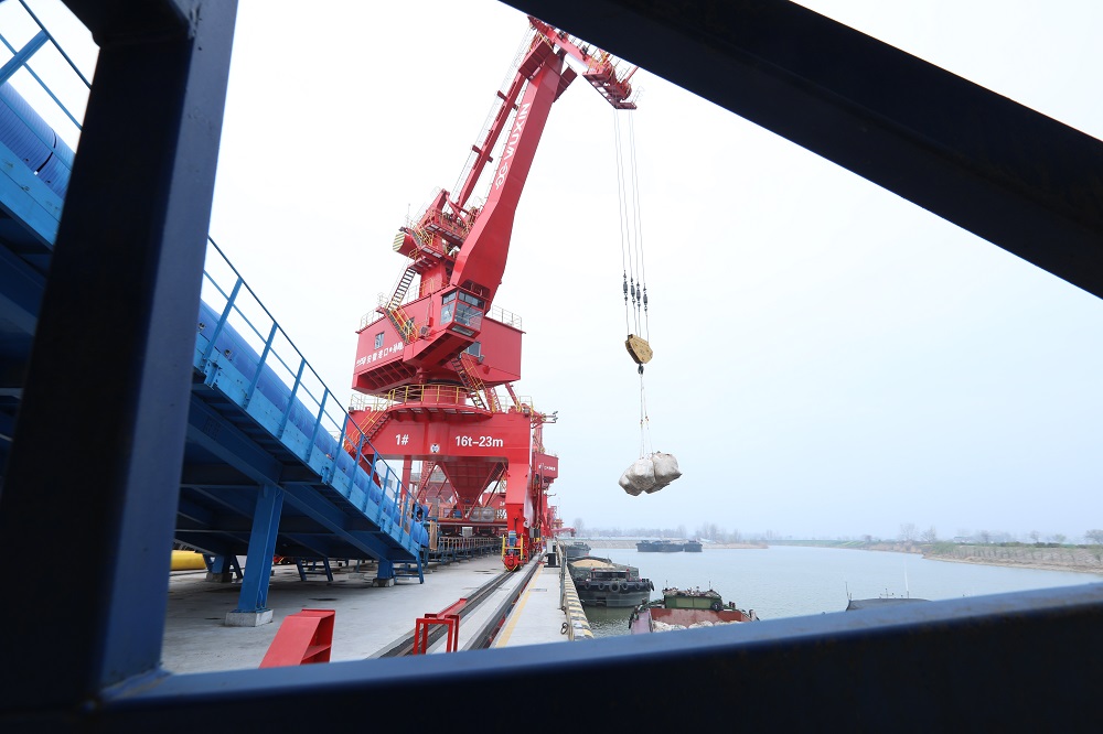 3月26日,記者來到淮北市濉溪縣孫疃港,現(xiàn)場起重機(jī)、多用途門機(jī)、移動(dòng)式裝船機(jī)屹立在澮河岸邊正在吊運(yùn)貨物,一派忙碌的景象。