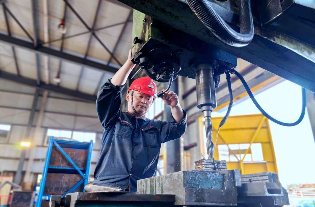 “十四五”專班PBAT項目一名工人在加工彎管。