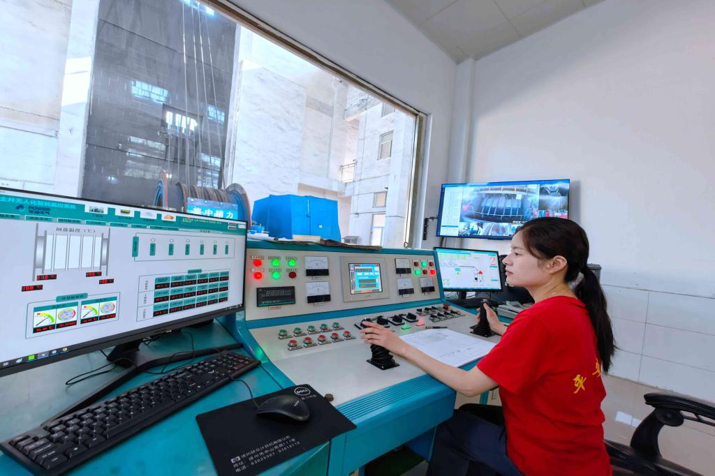 圖為保運區絞車司機董平正在操作運行主井絞車