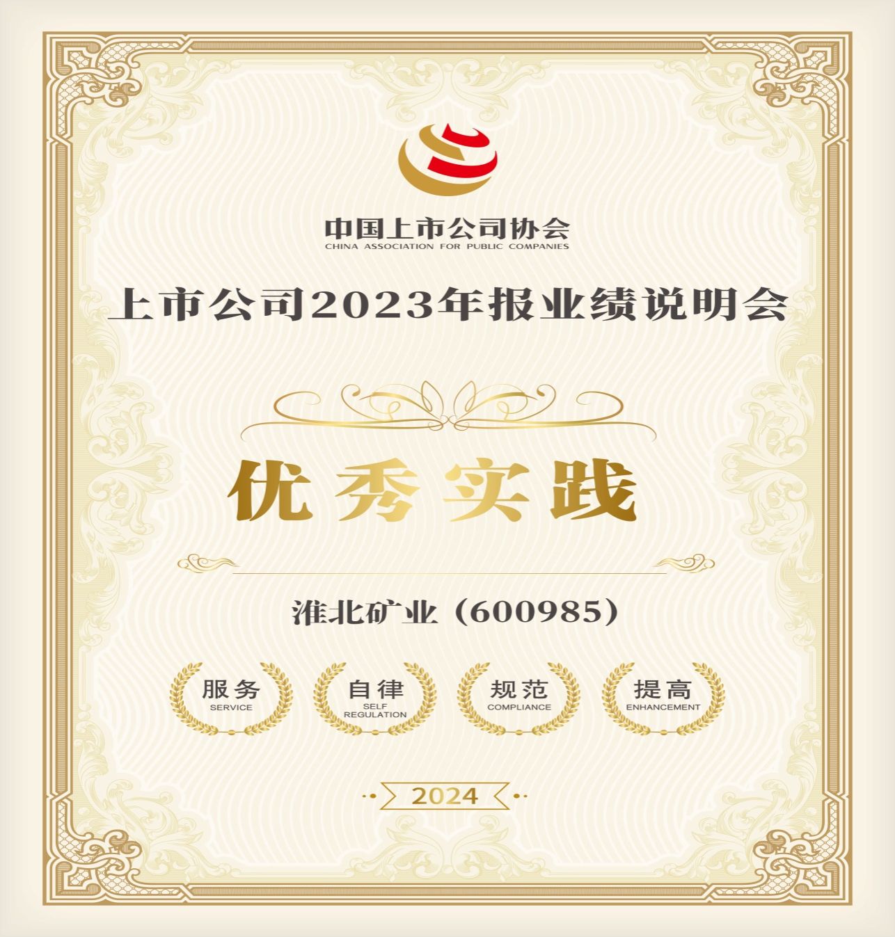 淮北礦業榮獲 “上市公司2023年報業績說明會優秀實踐”獎