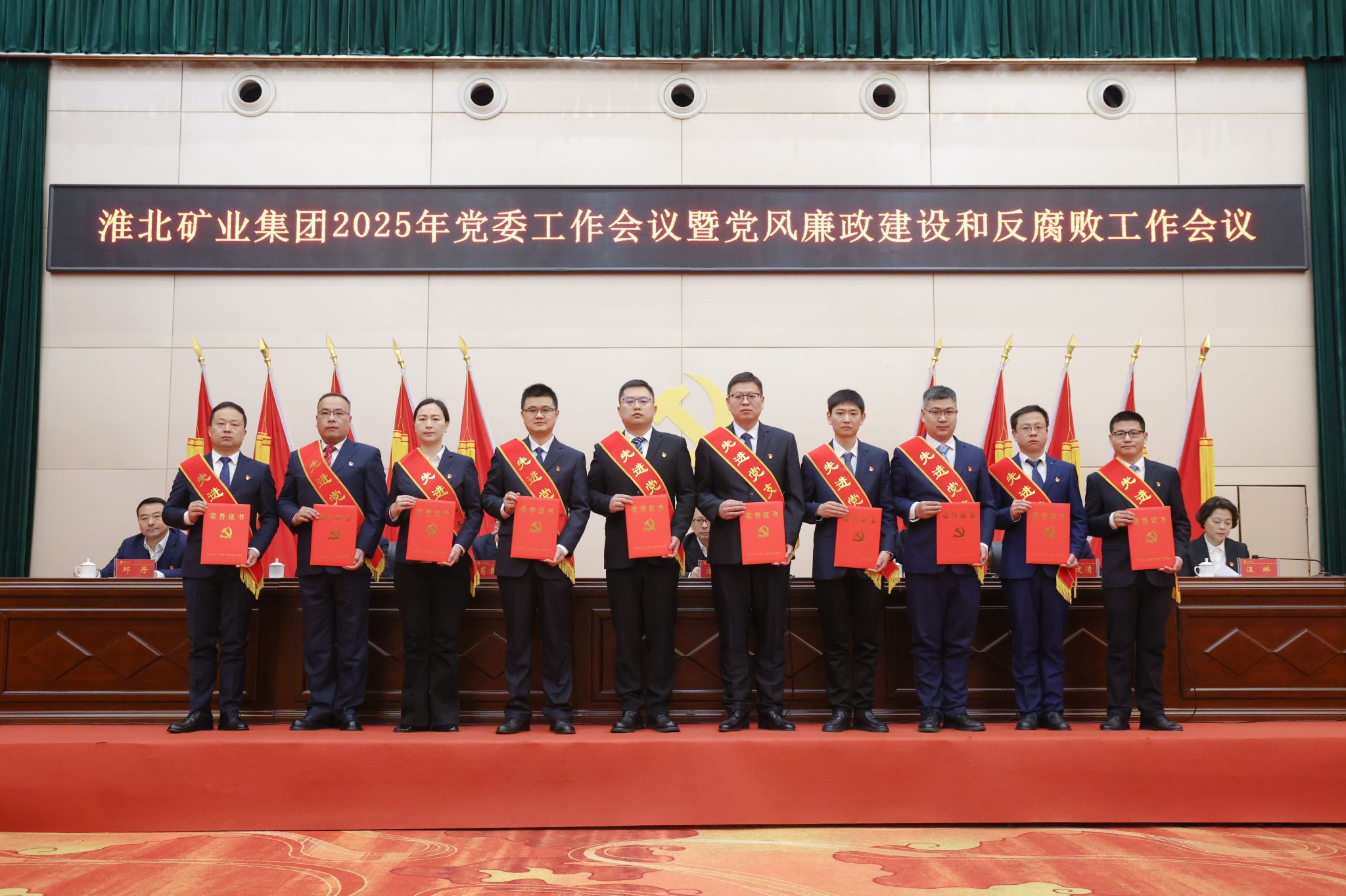 淮北礦業集團始終堅持黨旗所指就是行之所向,深入學習貫徹黨的二十屆四中全會精神和習近平總書記考察安徽重要講話精神,堅定不移推進全面從嚴治黨,大力實施“5+6”黨建提質行動,讓高質量黨建成為引領企業高質量發展的“紅色引擎”。集團在全省學習貫徹《全國黨政領導班子建設規劃綱要(2024—2028年)》及國企黨建創新實踐交流會、全國煤炭企業新聞宣傳會議、省屬企業宣傳思想文化工作會議上作交流。集團領導班子先后9年在省委綜合考核中獲評“優秀”,黨委選人用人滿意度居省屬企業前列;紀委在省紀委監委考核中連續6年獲評“優秀”。