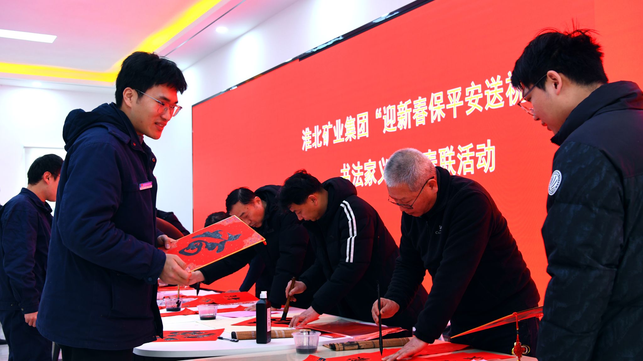 新春佳節將至,年味愈濃,暖意更盛。近日,淮北礦業集團組織"迎新春 保平安 送祝福"書法家義務寫春聯活動,特邀7位礦區書法家組成志愿服務隊,深入蘆嶺礦、臨渙礦、青東礦等11家基層單位,為一線職工揮毫送福,讓濃濃墨香與真摯祝福溢滿百里礦區。