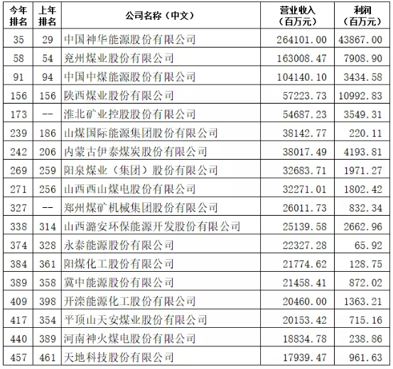 2019中國500強排行榜發(fā)布!煤炭行業(yè)18家公司上榜!